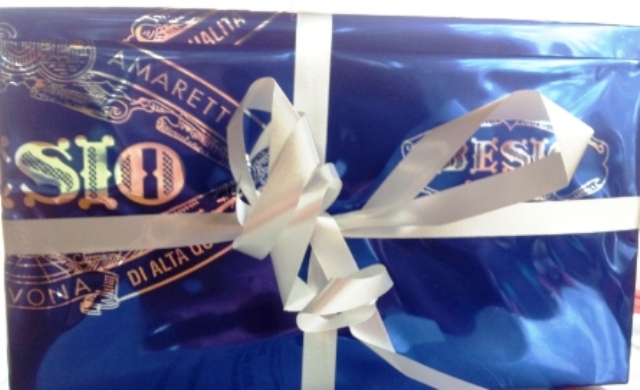 Spedisco il mio libro e dopo qualche giorno ricevo un grande pacco di amaretti elegantemente confezionati con tanto di carta lucida e nastrino trionfante. Date un po’ un’occhiata.