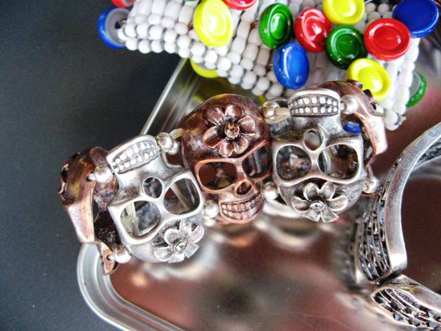 Questo invece è un piccolo campionario dei bracciali che indosso abitualmente, tutta paccottiglia di pochissimo valore con qualche pezzo un po’ pacchiano ma, si sa, la classe non è acqua e qualunque cosa diventa preziosa addosso alla persona giusta…e, modestamente, io la sono 🙂