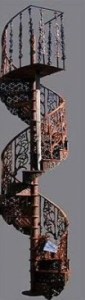 Una scala a chiocciola stretta, alta, sospesa tra terra e cielo