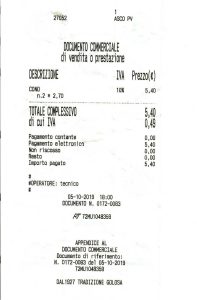 Giunta a casa stavo per gettare lo scontrino quando lo sguardo mi è caduto sulla forma di pagamento: come vedete c’e scritto “pagamento elettronico”, ma io ho pagato in contanti.