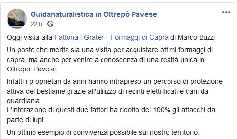 Loro che hanno trovato il modo ci vivere pacificamente nei territori dei lupi, come descrive “Guidanaturalista in Oltrepò Pavese”