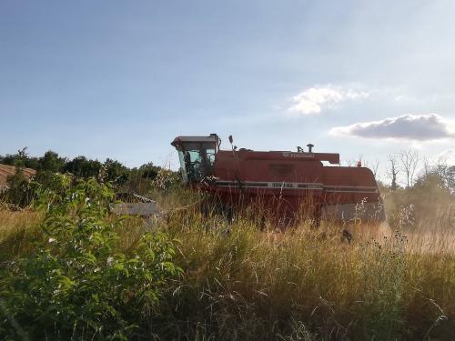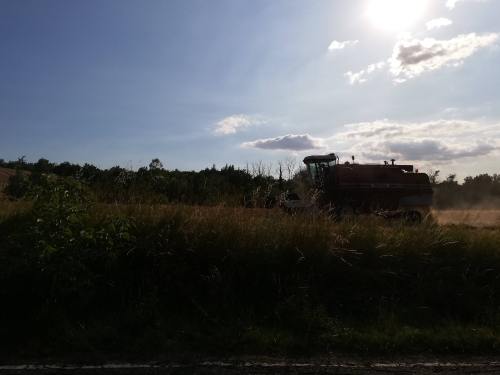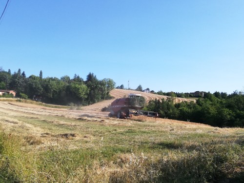 Eccola qua la grande macchina che pettina i campi di grano