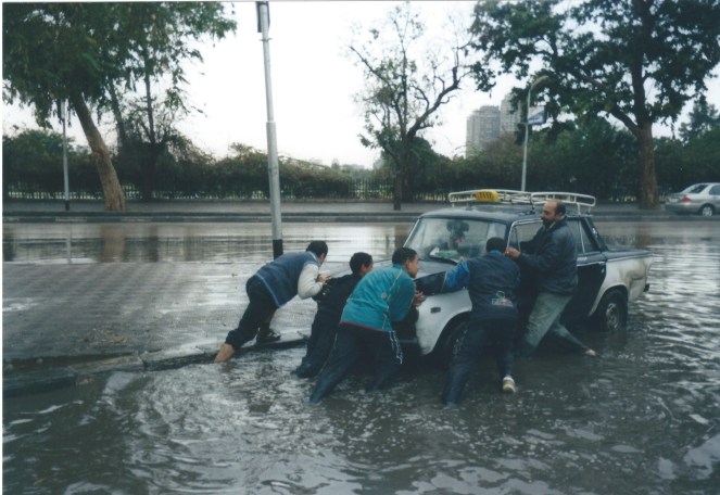 Anch’io beccai il temporale al Cairo… stesse scene! Per altro era gennaio 2011, appena in tempo prima che anche le mummie si arrendessero…