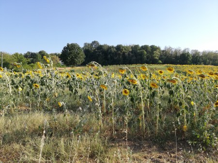 Tre settimane fa erano ancora verdi i girasoli di questo campo del Malpasso dove vado a scarpinare.