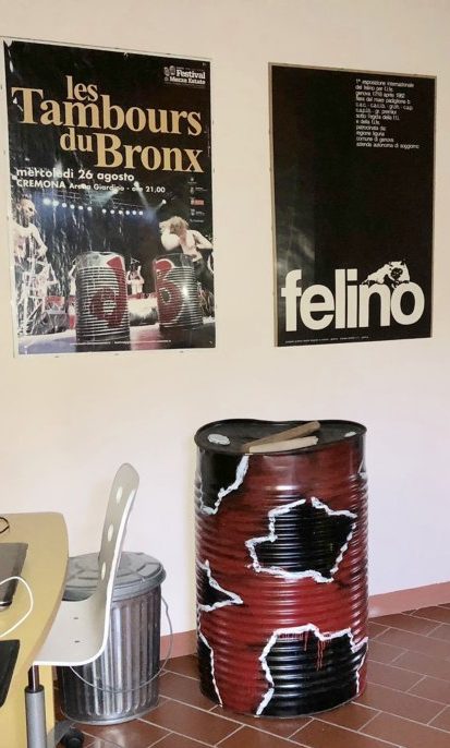 Quelli che vedete sotto sono i bidoni suonati durante un concerto da uno dei miei gruppi preferiti che sia chiama “Les Tambours du Bronx”, (il video musicale di pesta mattina), sono in casa mia come pezzi di arte; me li sono guadagnati seguendoli in tanti concerti che hanno fatto in Italia.