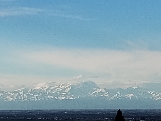 Che spettacolo le Alpi innevate! E il cortile quieto, che regala tranquillità. Grazie!